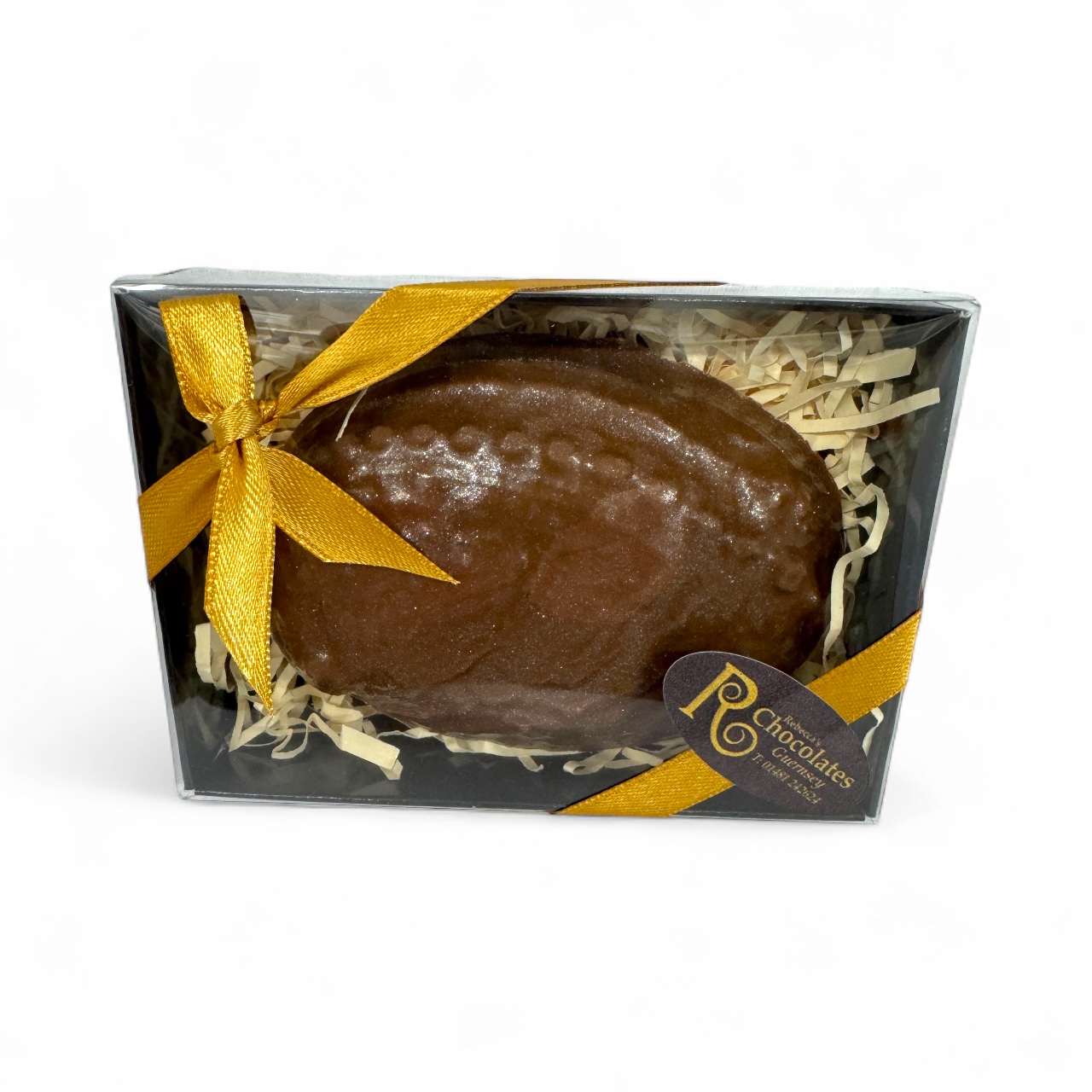 Handmade Dark Chocolate Ormer Shell filled with Caramel and Sea Salt covered with an edible silver luster quantity