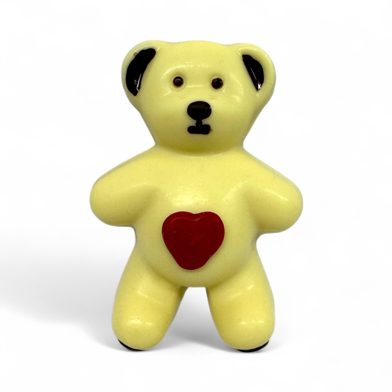 Handmade White chocolate Teddy Bear filled with rice Crispies and sugar heart motif belly